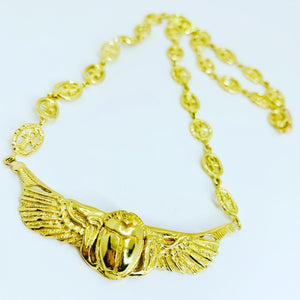 Heru BEHUDET the winged Scarab/KHEPERA of rebirth and renewal in 18k yellow gold solid w individual Ankh links. available in 16-24”